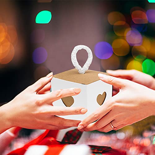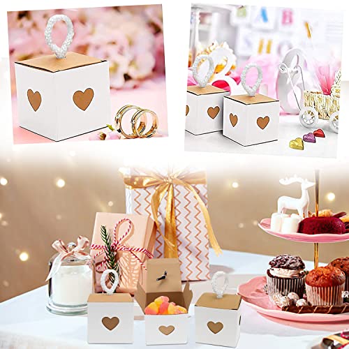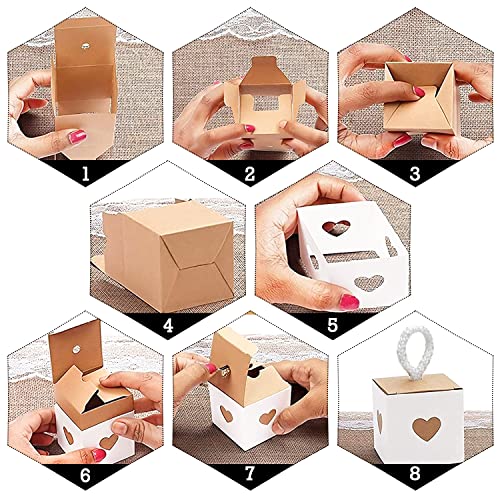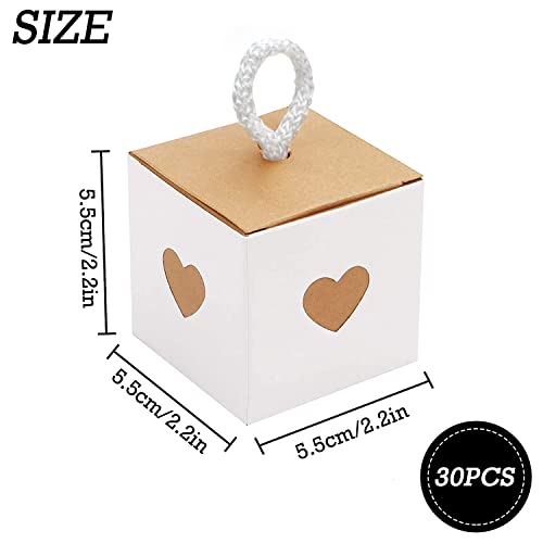 LE FORFAIT COMPREND:Le coffret cadeau de mariage sucré contient 30 pièces au total. Papier kraft blanc avec des couvercles qui ont un look charmant. Une fois assemblée, chaque boîte mesure 5,5 x 5,5 x 5,5 cm. Le nombre est suffisant pour répondre aux besoins de la fête.