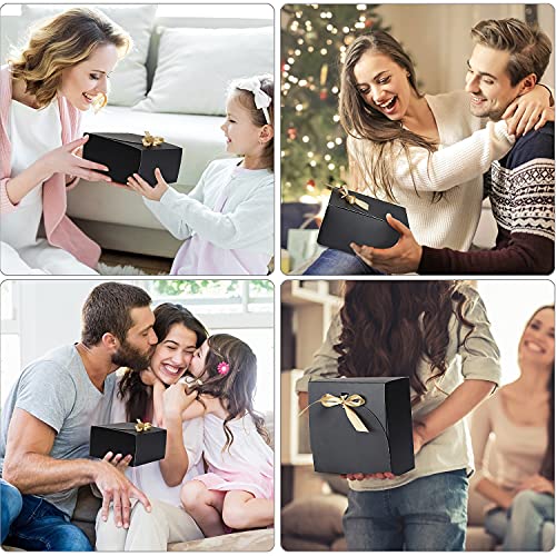 Lot de 10 grandes boîtes cadeau Etercycle Kraft avec ruban, 20 x 20 x 10 cm, carrées pour cadeaux, fête, anniversaire, mariage (noir)