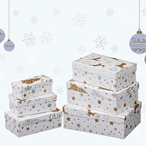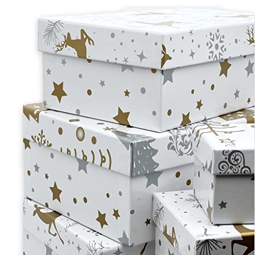Lot de 6 boîtes cadeaux – Lot de 6 boîtes cadeaux – Blanc doré et argenté