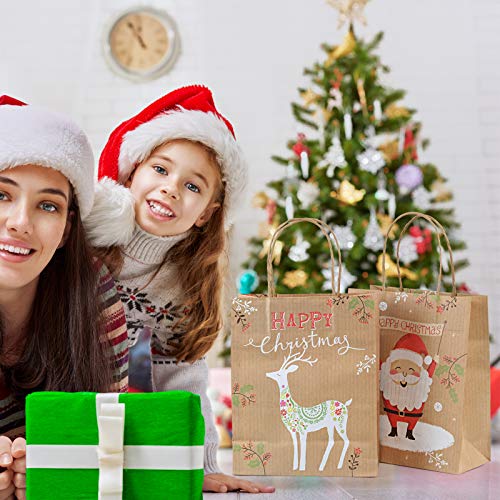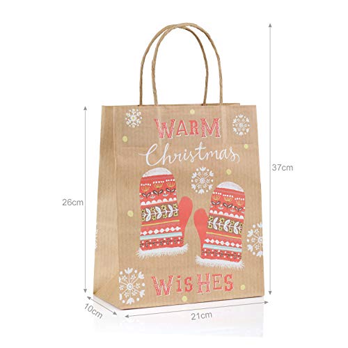 Gwhole Lot de 12 Sacs Cadeaux en Papier avec Poignée Pochettes de Noël – 26cm x 21cm x 10cm