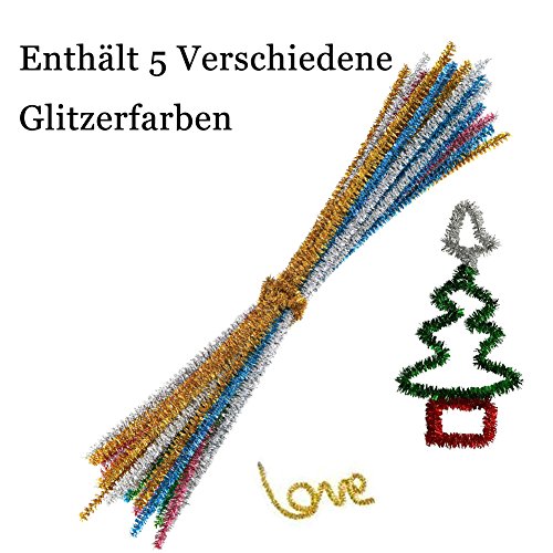 Matériau: Fil flexible et polyester – Couleur : 10 cure-pipes multicolores et 5 cure-pipes à paillettes pour répondre à vos différents besoins – Complétez votre projet