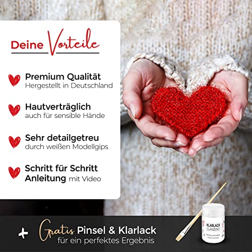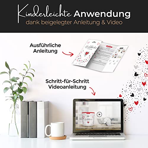Utilisation facile – Avec les instructions étape par étape et la vidéo détaillée, l’empreinte de main est garantie. Si vous ne réussissez pas directement à la première fois, vous pouvez nous écrire immédiatement et nous trouverons une solution