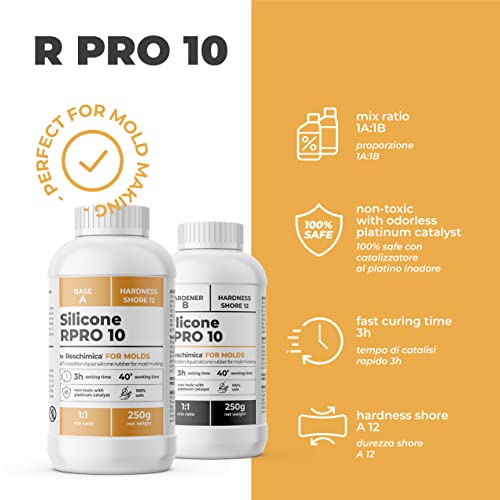 Specification: Reschimica Caoutchouc de Silicone Liquide pour Moulage R Pro 10 de Haute qualité, 100% sûr, Non Toxique, avec catalyseur au Platine, Doux et résistant (Rapport de Mixtion 1:1) (1 kg)